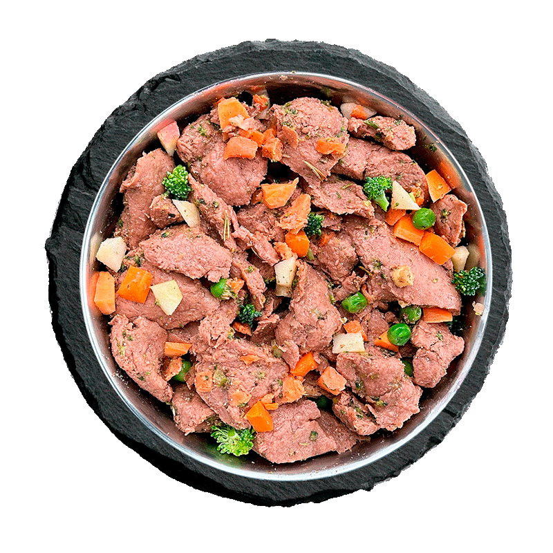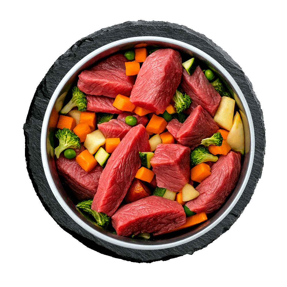 La carne y las vísceras de alta calidad se cocinan suavemente al vapor a bajas temperaturas. Solo después mezclamos diversas verduras blanqueadas, aceites de primera calidad y minerales naturales. Desarrollado con veterinarios y hecho con amor.