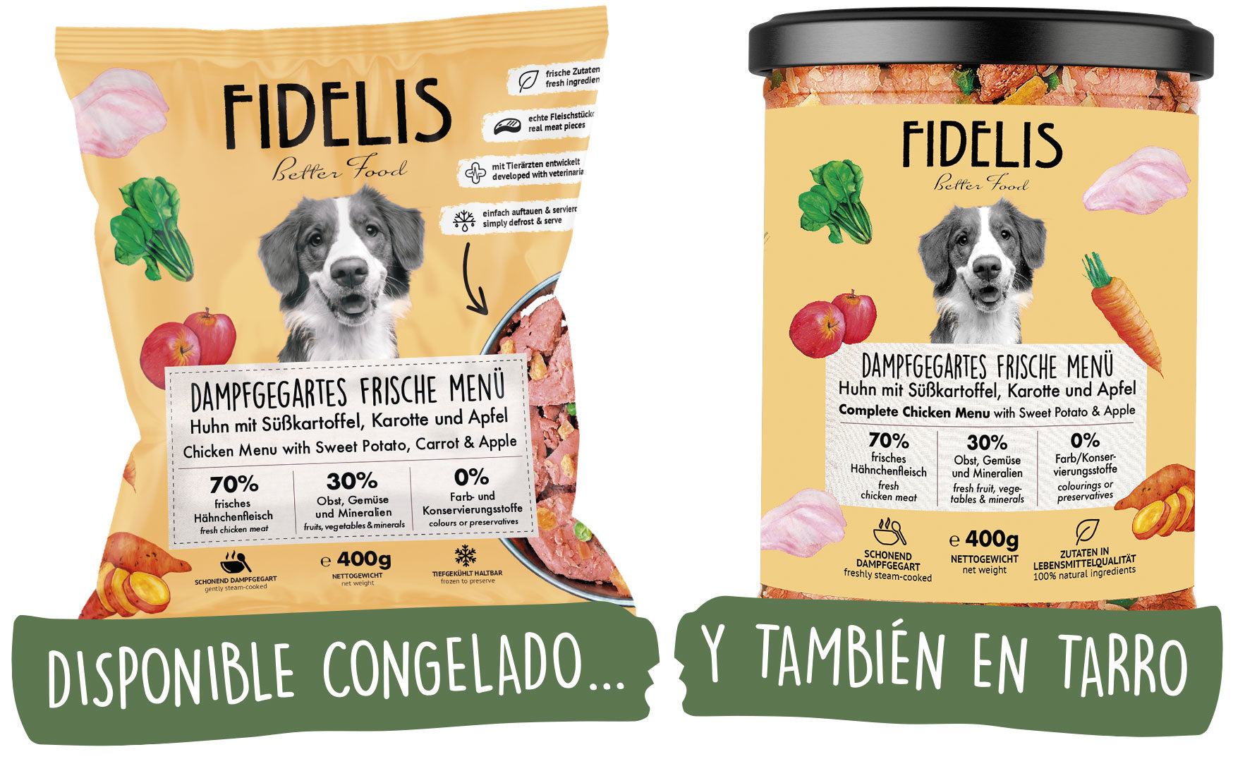 Claudia solía cocinar ella misma para su perro Wotan. El pienso seco y la comida enlatada le parecían demasiado poco saludables, y Wotan no toleraba el BARF. Los Menús Frescos de FIDELIS se ven tan apetitosos como las comidas caseras de Claudia. En cuanto al precio, son más o menos iguales —pero, teniendo en cuenta el tiempo dedicado a comprar y cocinar, los Menús Frescos de FIDELIS resultan claramente más económicos que cocinar uno mismo.